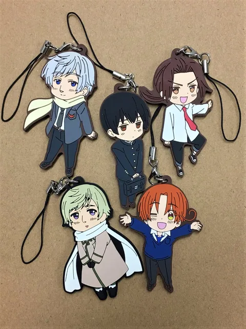5pcs/lot Axis Power Hetalia Anime keychain Feliciano Vargas Ludwig Honda Jones llavero Rubber strap/phone charms